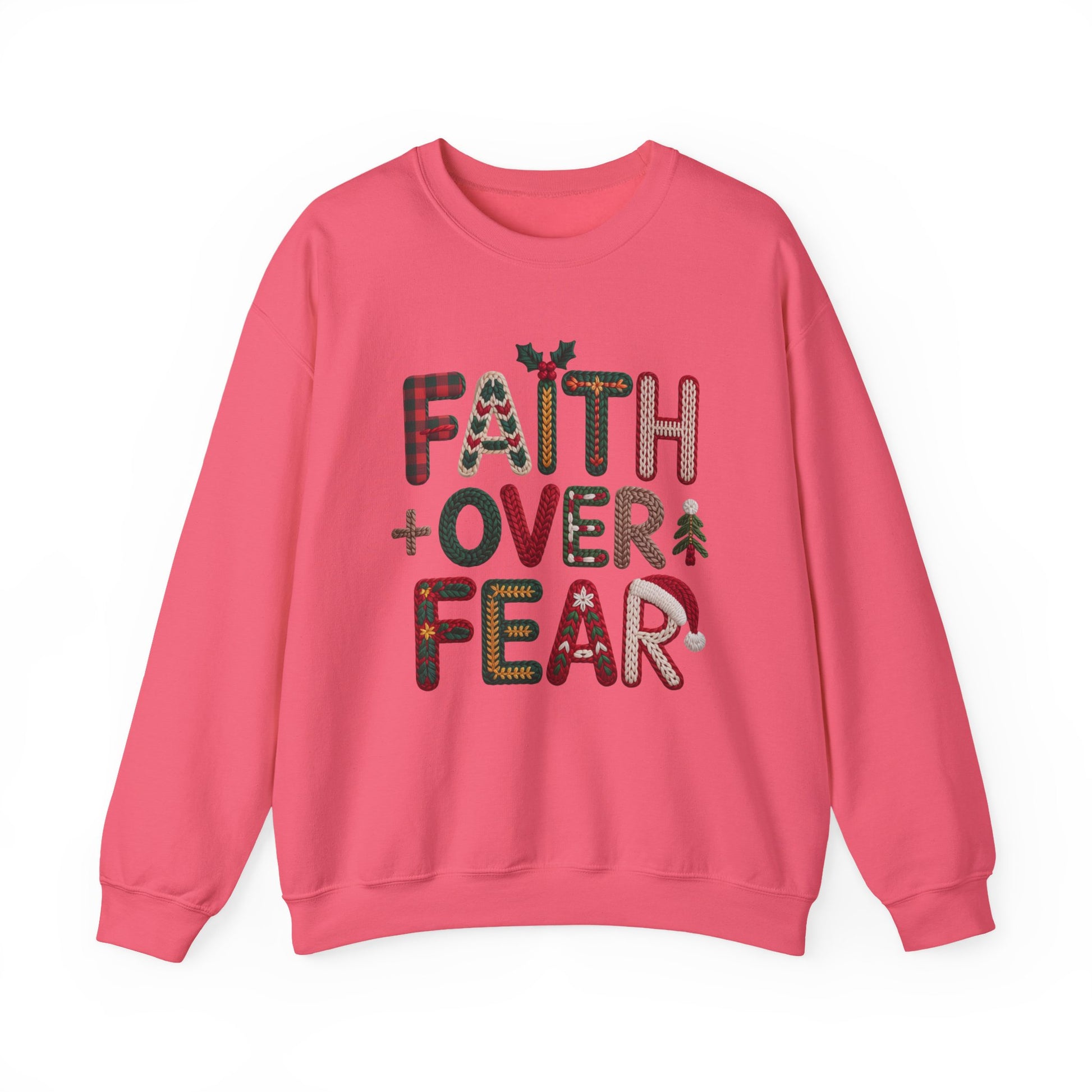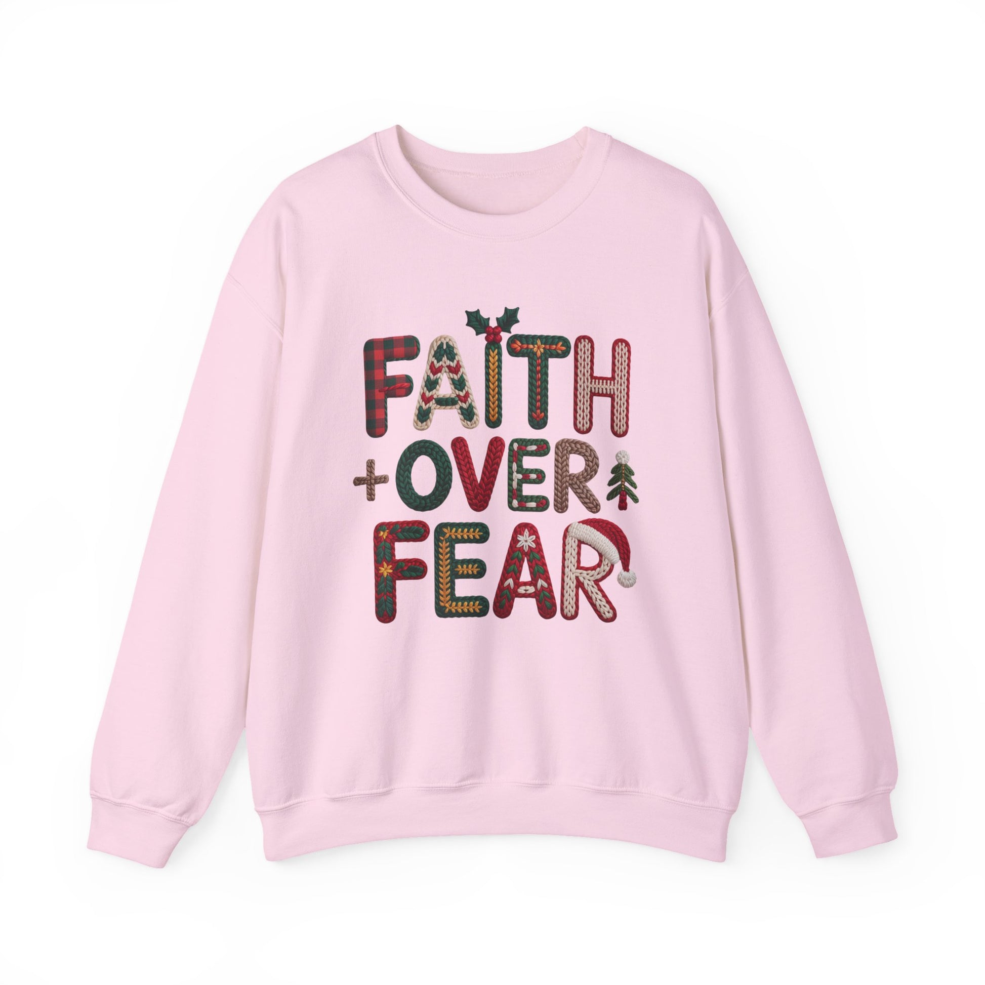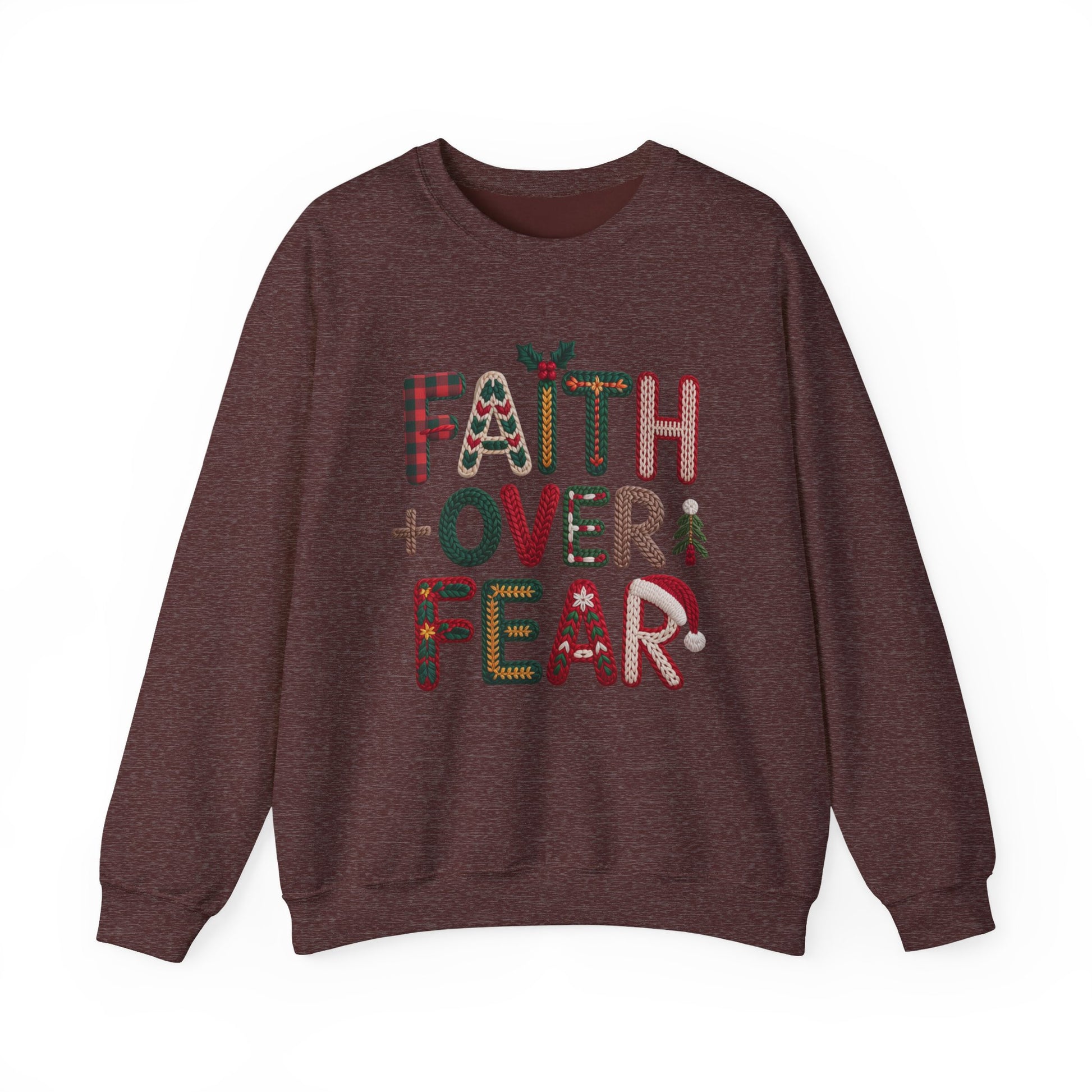 Faith Over Fear Faux Yarn Sweatshirt Holiday Crewneck